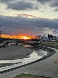 最近は三滝川の橋の上からご来光を拝みます。